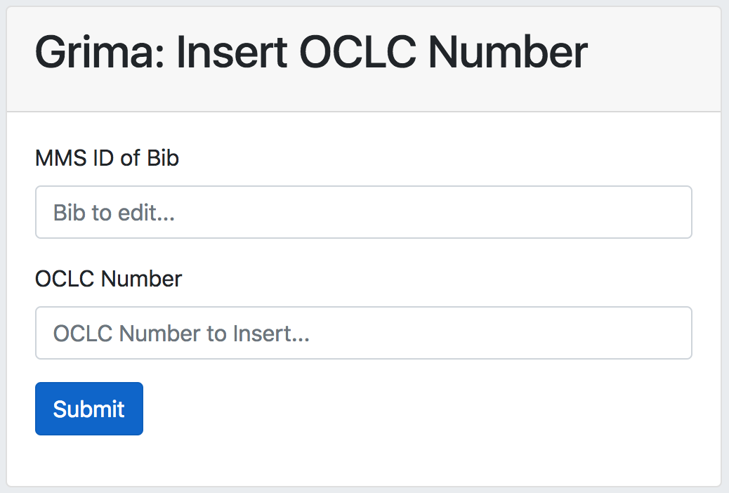 <Title>Grima: Insert OCLC Number</Title>